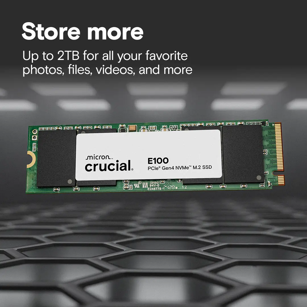 - Perfect For Any Build – Whether upgrading an older PC or powering a new Gen4 gaming beast, the Crucial E100 delivers.